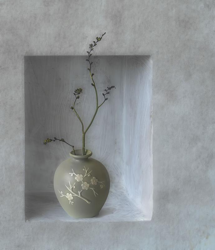 Green Vase with Crocosmia Seed head